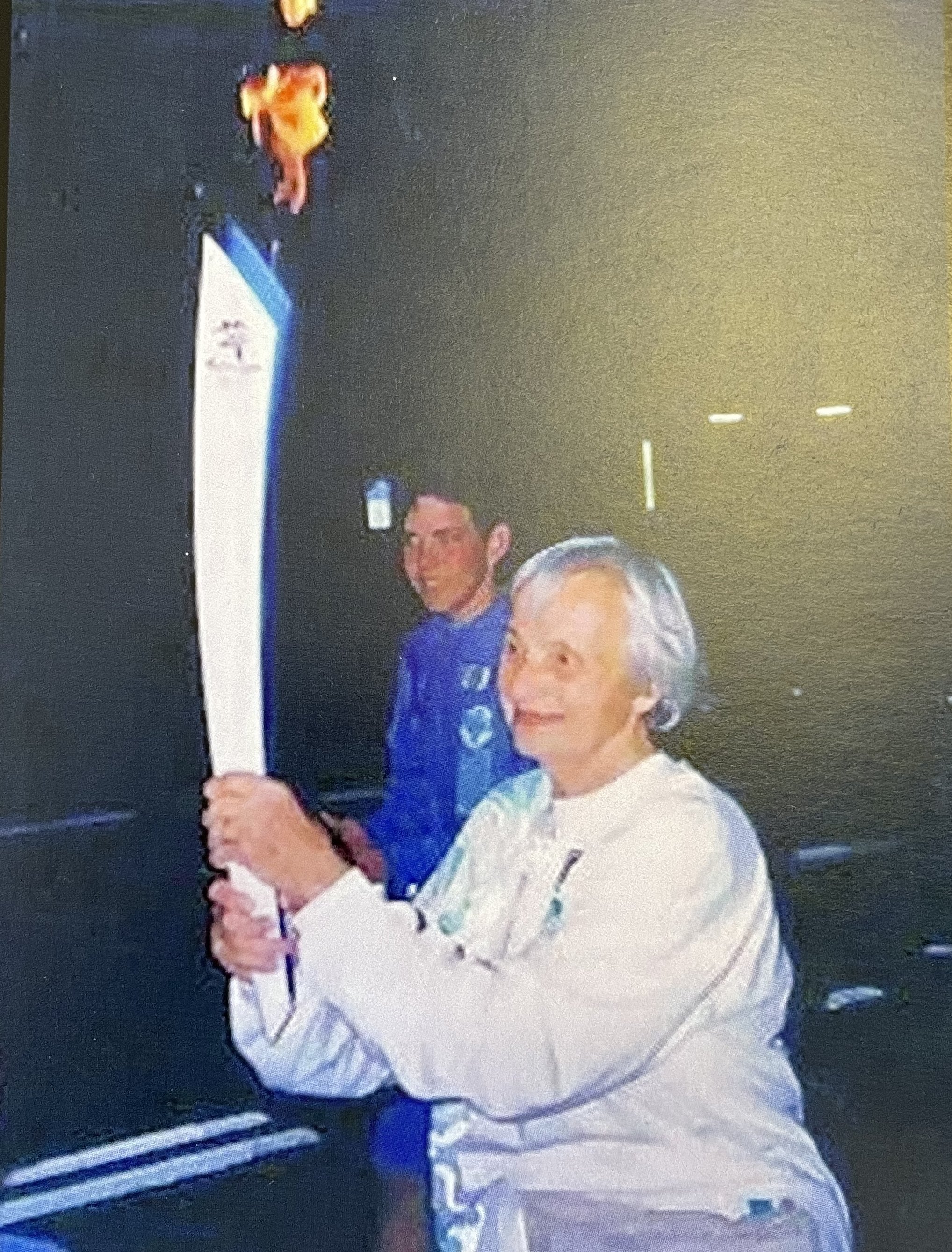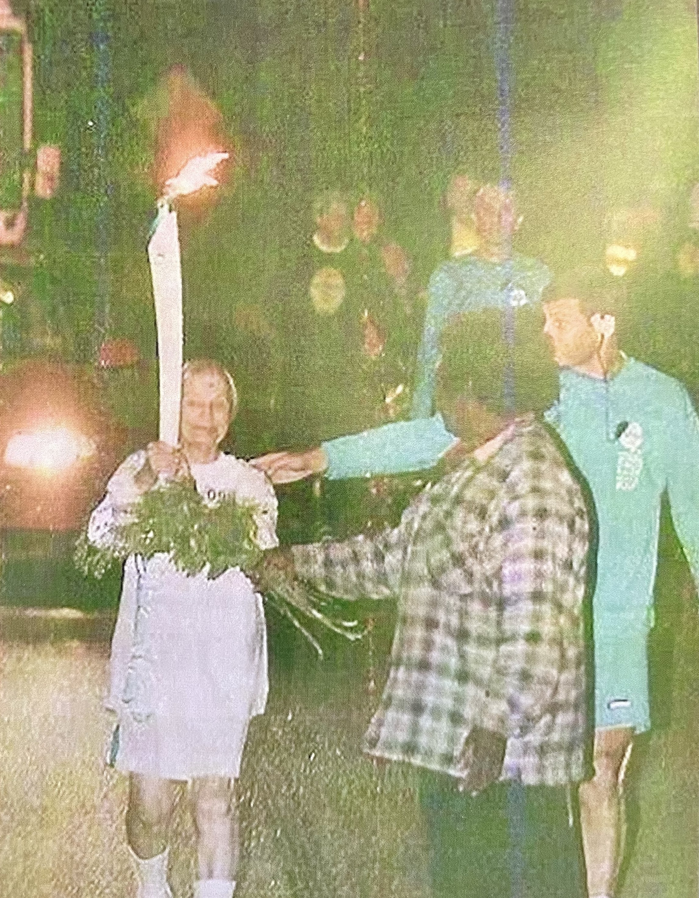 And I had this nice young boy of about 14. So I gave him the flowers to hold ‘cause I couldn’t carry the torch.
