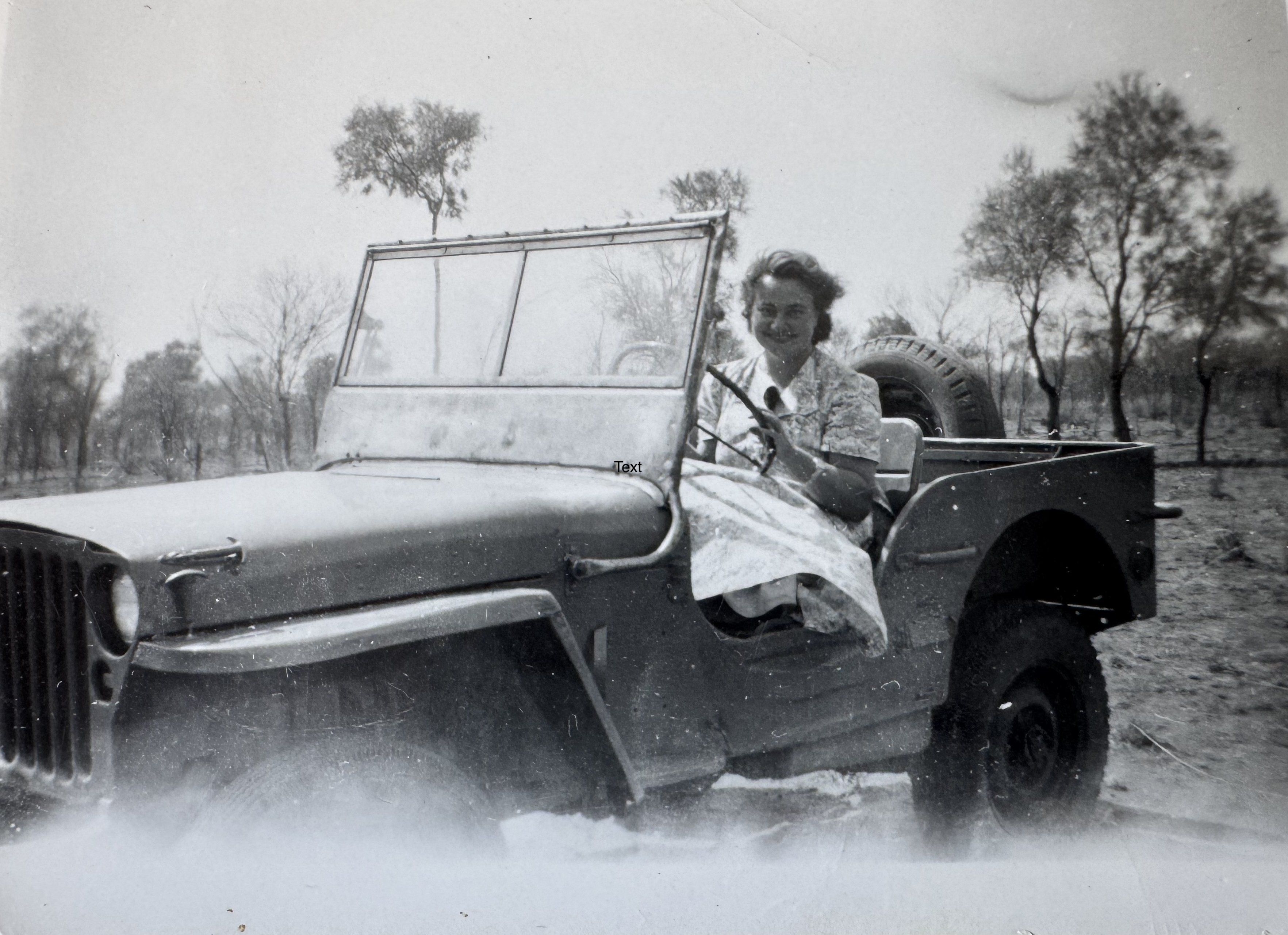 I drove the jeep about ten miles all by myself one day as Martyn was driving another vehicle. I only flattened one little gum tree, but luckily it sprung up again and is still living. All the cattle and sheep cleared off the road as I thundered madly along, and even the rabbits ran for their lives.