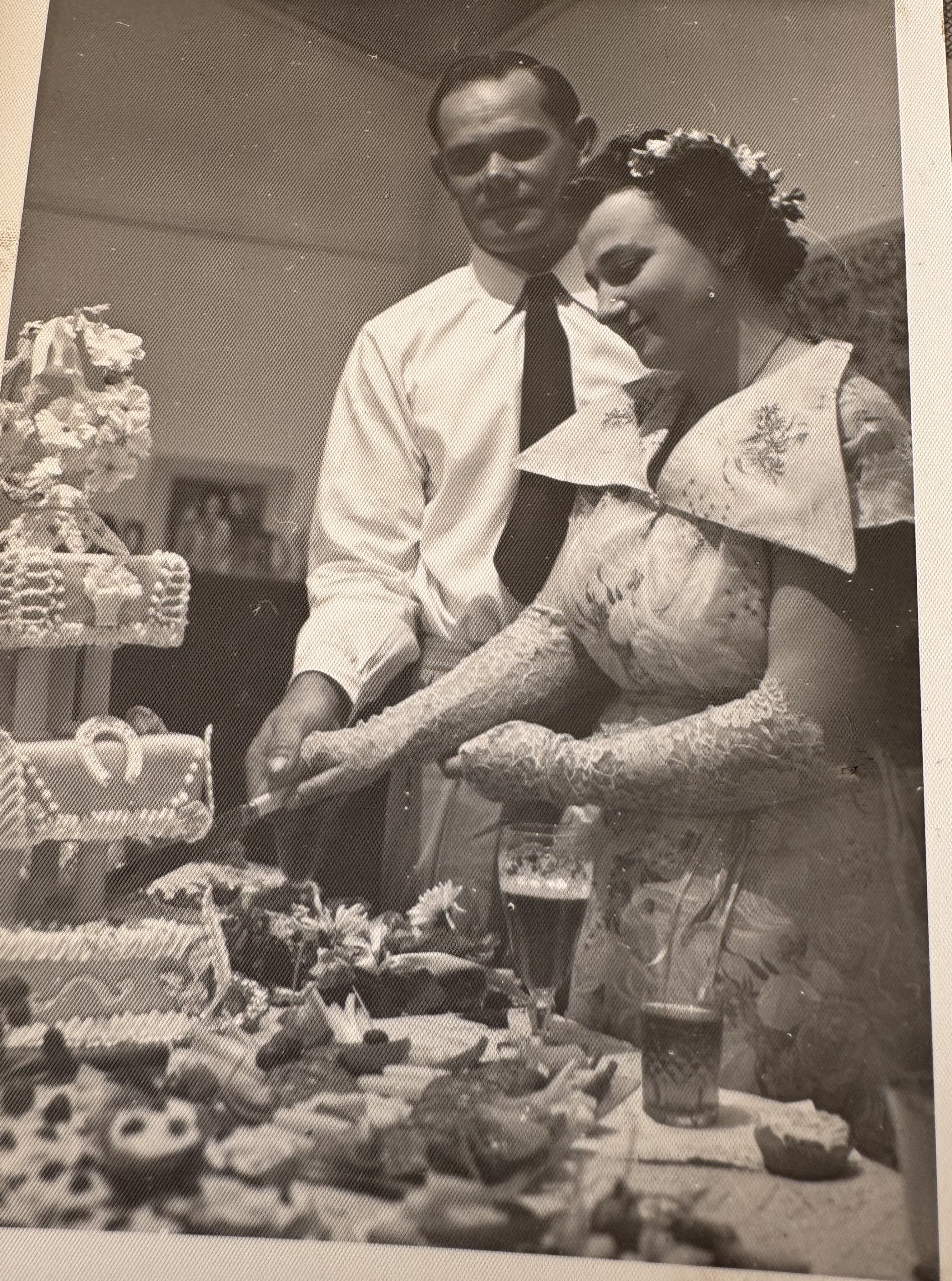 and he said we could get married on his verandah. So I had no one to come of course, but they had about 40 relations and friends coming.